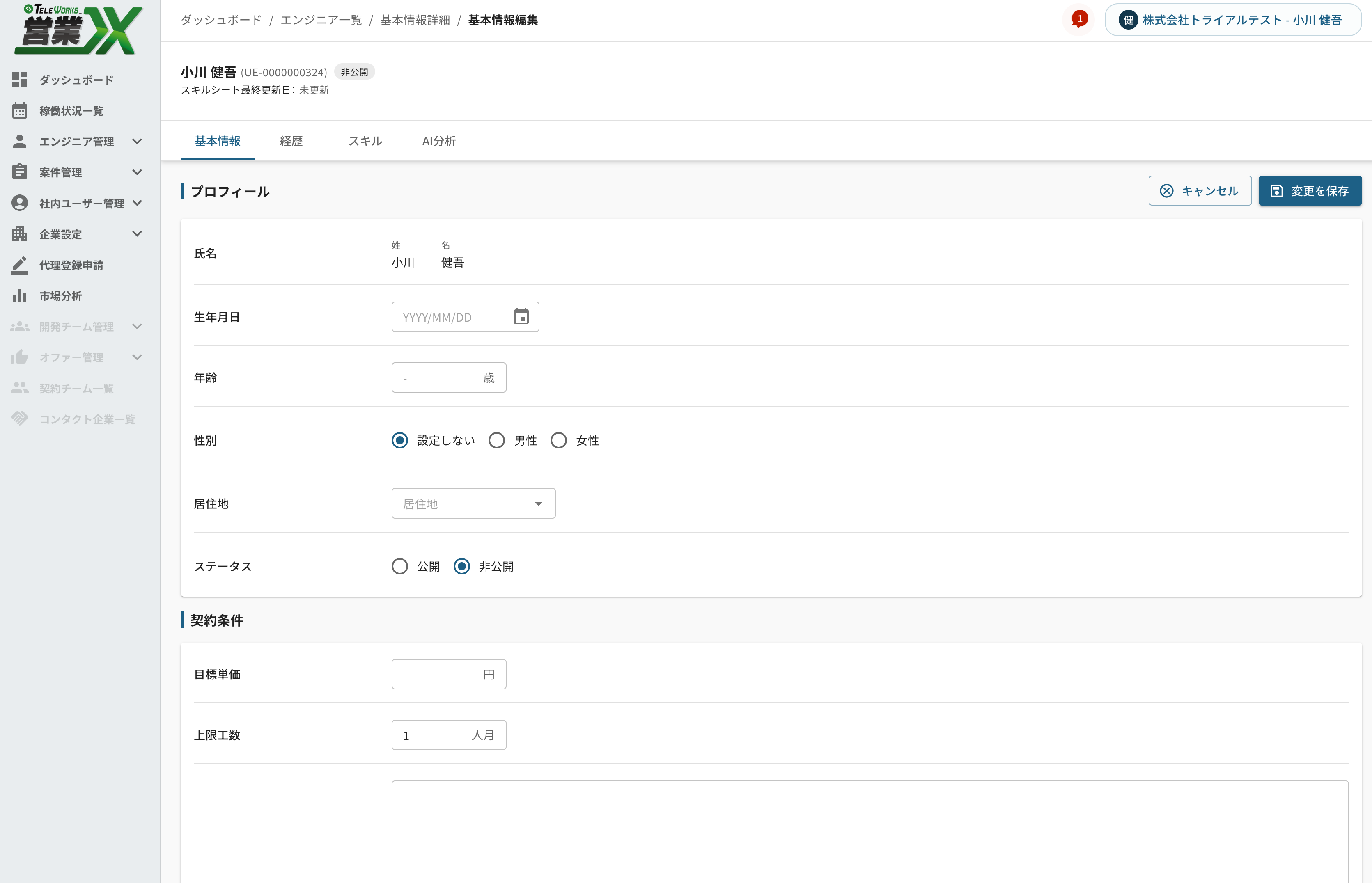 [エンジニア管理] → [エンジニア一覧] を開きます。