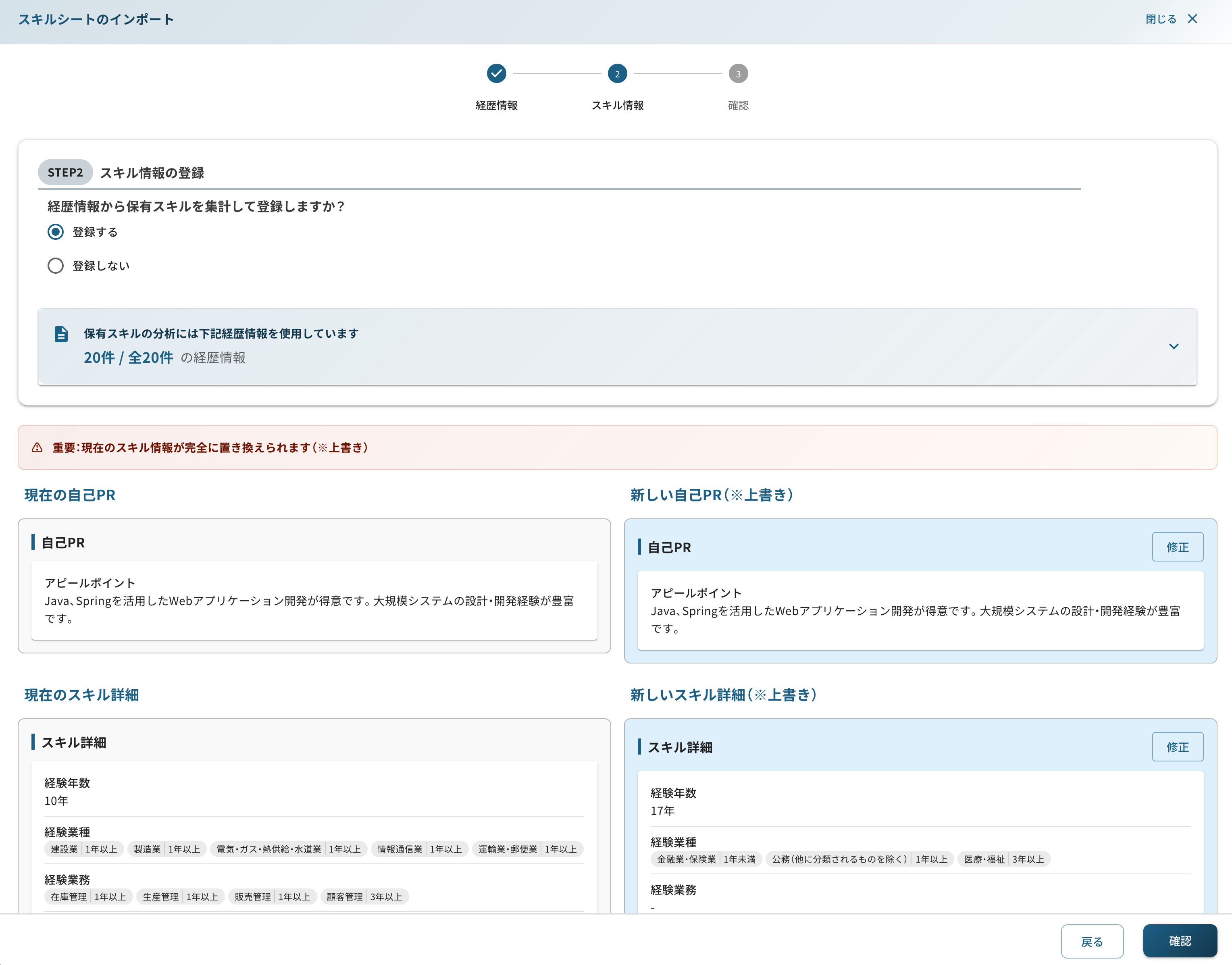 • 登録される 経歴情報・スキル情報の最終確認を行います