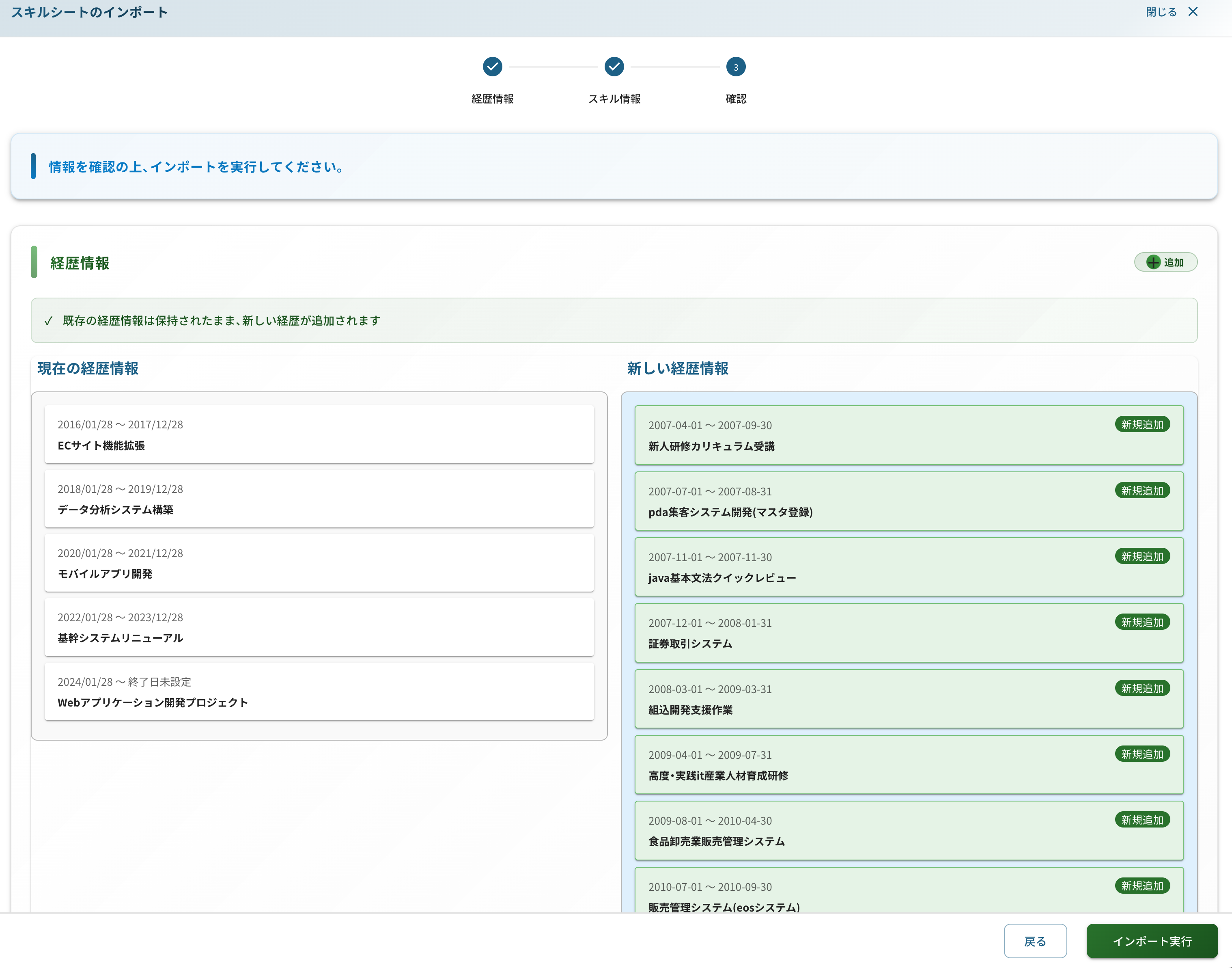※ 既存の経歴は保持され、新しい経歴が追加されます