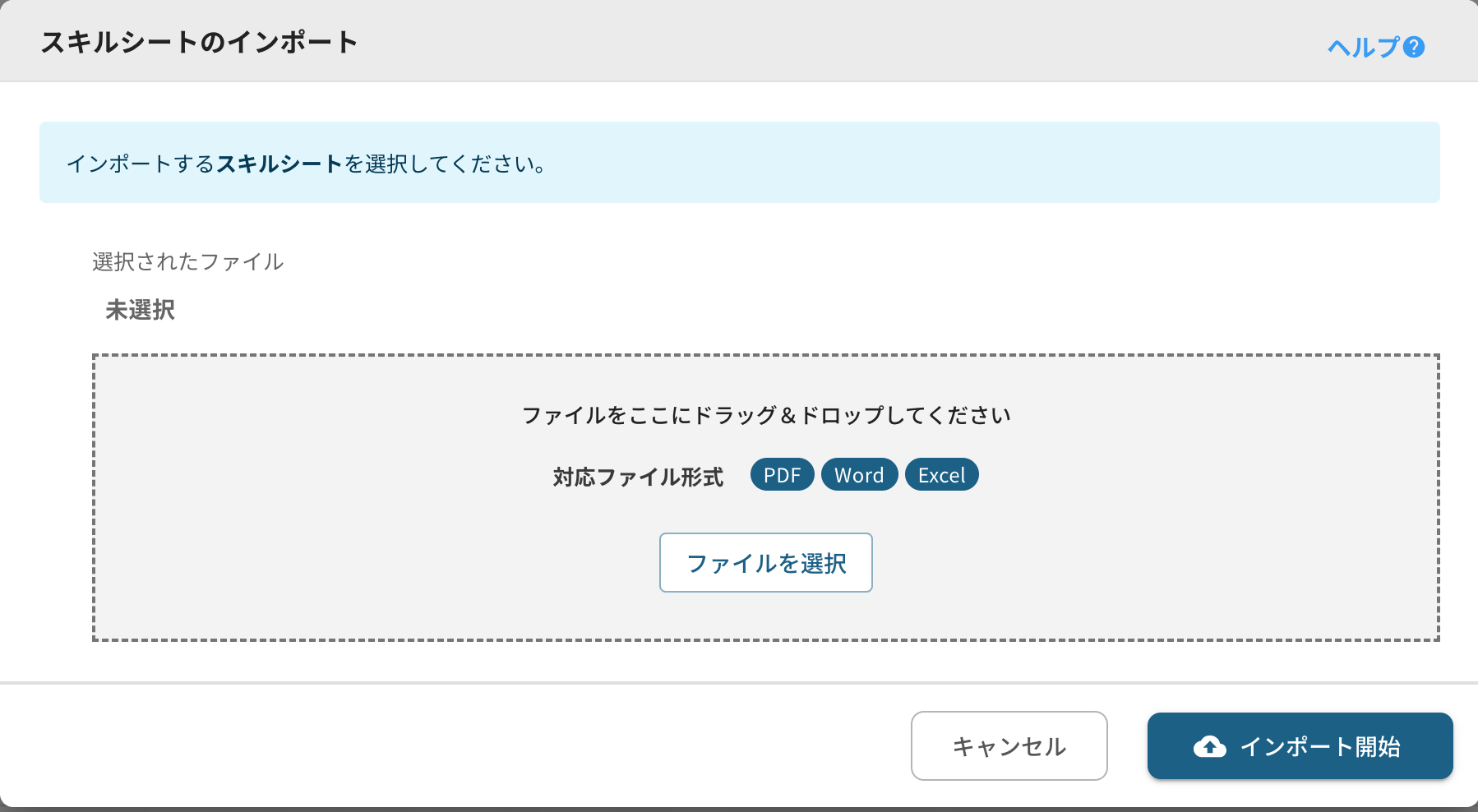 3. スキルシートファイルを添付し、[インポート開始] を押します