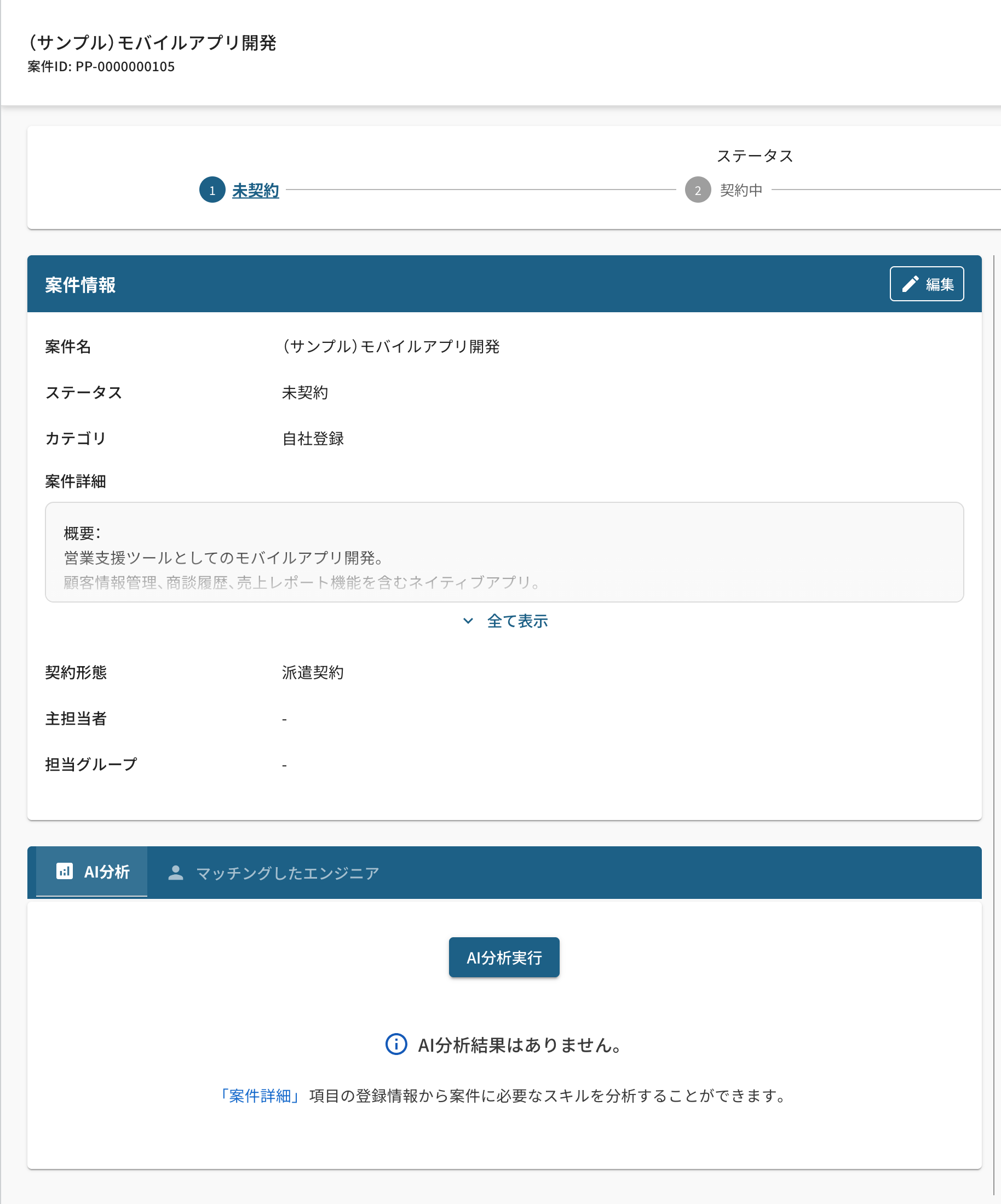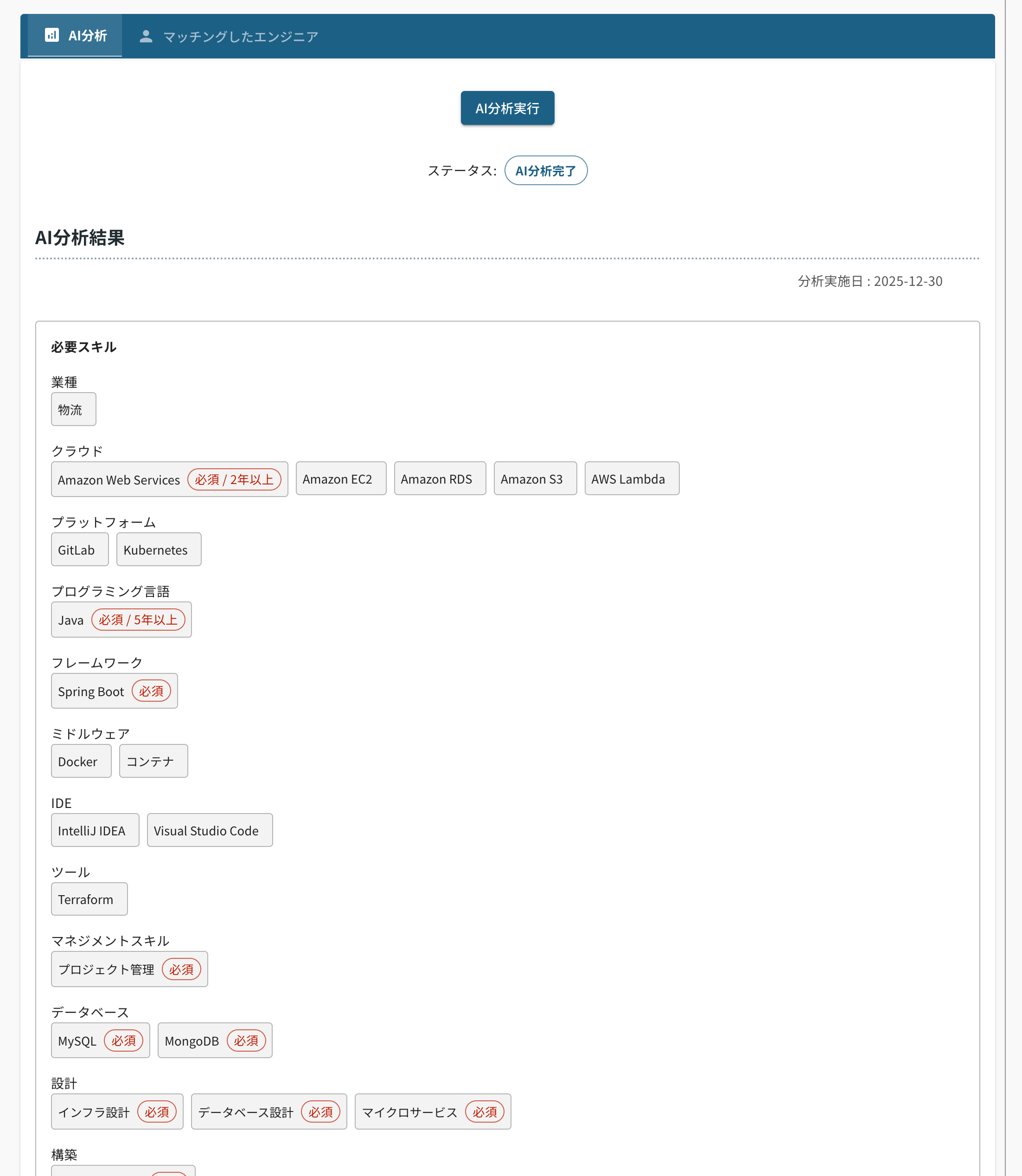 案件詳細に記載された内容(スキル要件・業務内容など)をもとに、AIが分析を開始します。