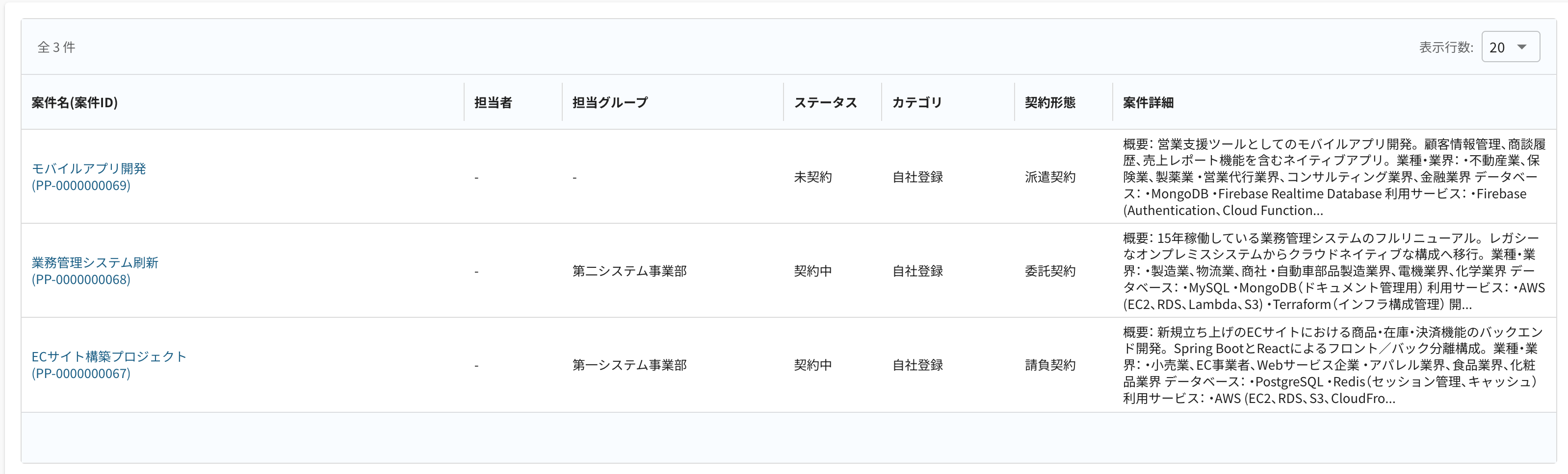 案件一覧から案件名をクリックすると、案件詳細画面が表示されます。